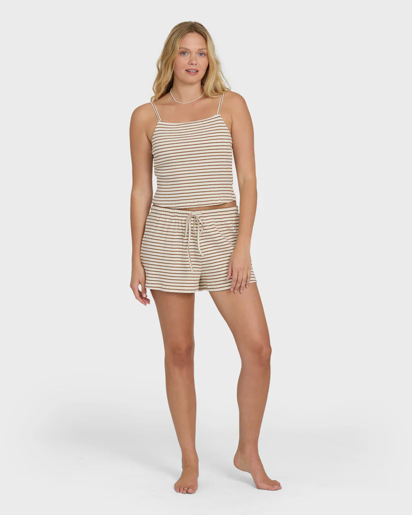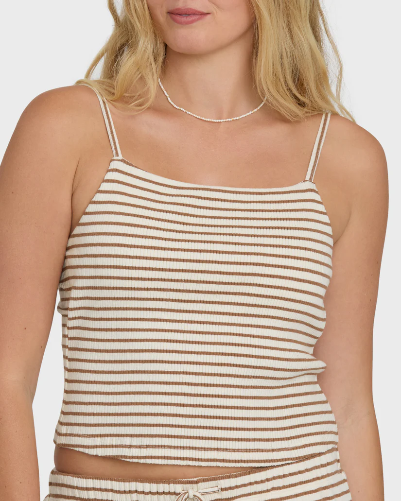 Easy days, sorted. The Easy Livin Cami is that soft, ribbed tank you throw on without thinking and somehow always feel good in. Made of stretchy knit with a fitted shape, it keeps things close but comfy, with a straight neckline, adjustable straps, and an interior shelf bra for a bit of built-in support. Finished with a tiny metal logo hit, it layers under everything or holds its own with cutoffs and sun-warmed skin. Brown Stone keeps it neutral, so you can wear it on repeat without getting bored. Featured here in the Brown Stone colorway.