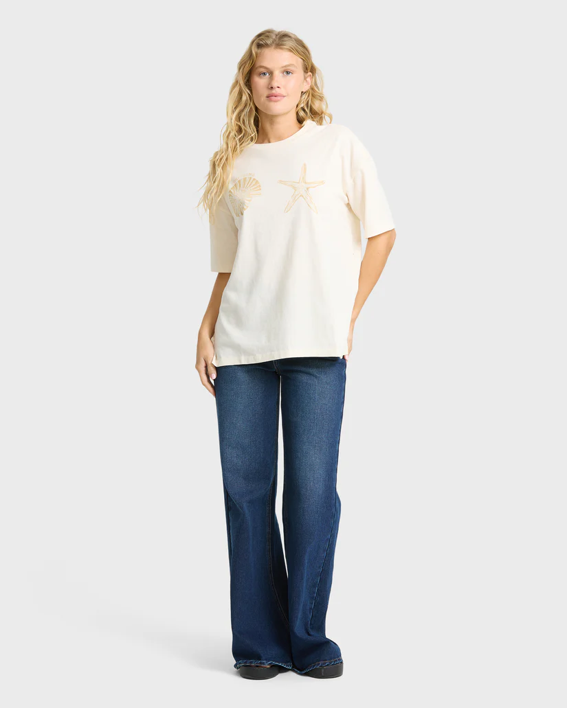 The In Front Of Me short sleeve tee is that throw-on-and-go piece you end up reaching for way more than you planned. Cut in a classic crew shape with an easy, not-too-tight fit, it’s made of soft knit 100% cotton in a washed White Cap shade that feels like it’s already lived a few summers. The front graphic keeps things simple but still says you’re here for the good stuff—slow mornings, long drives, salty hair. Toss it over bikinis, baggy denim, or whatever’s in front of you on the floor. It all works. Featured here in the White Cap colorway.