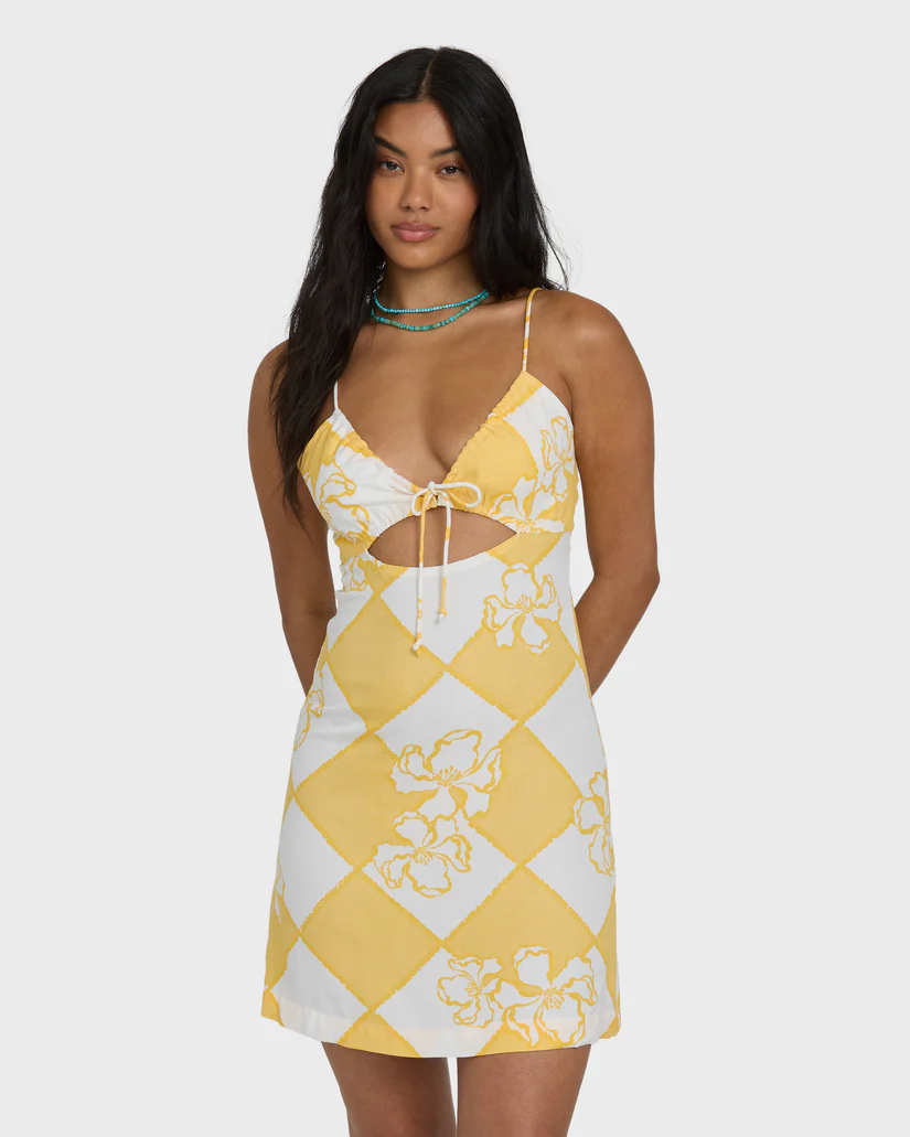 Sunlit mornings, bare shoulders, nowhere you really have to be. The Love Life Mini Dress leans into all of it. Cut from soft woven viscose that feels light against your skin, this sleeveless mini drapes easy with a floaty, throw-on fit made for warm days and late nights. The soft yellow hue gives that just-right glow, like golden hour on repeat. Slide it on with sandals, salty hair, maybe a cardigan later if the breeze picks up. Simple, happy, kinda flirty – the way you like it. Featured here in the Soft Yellow colorway.