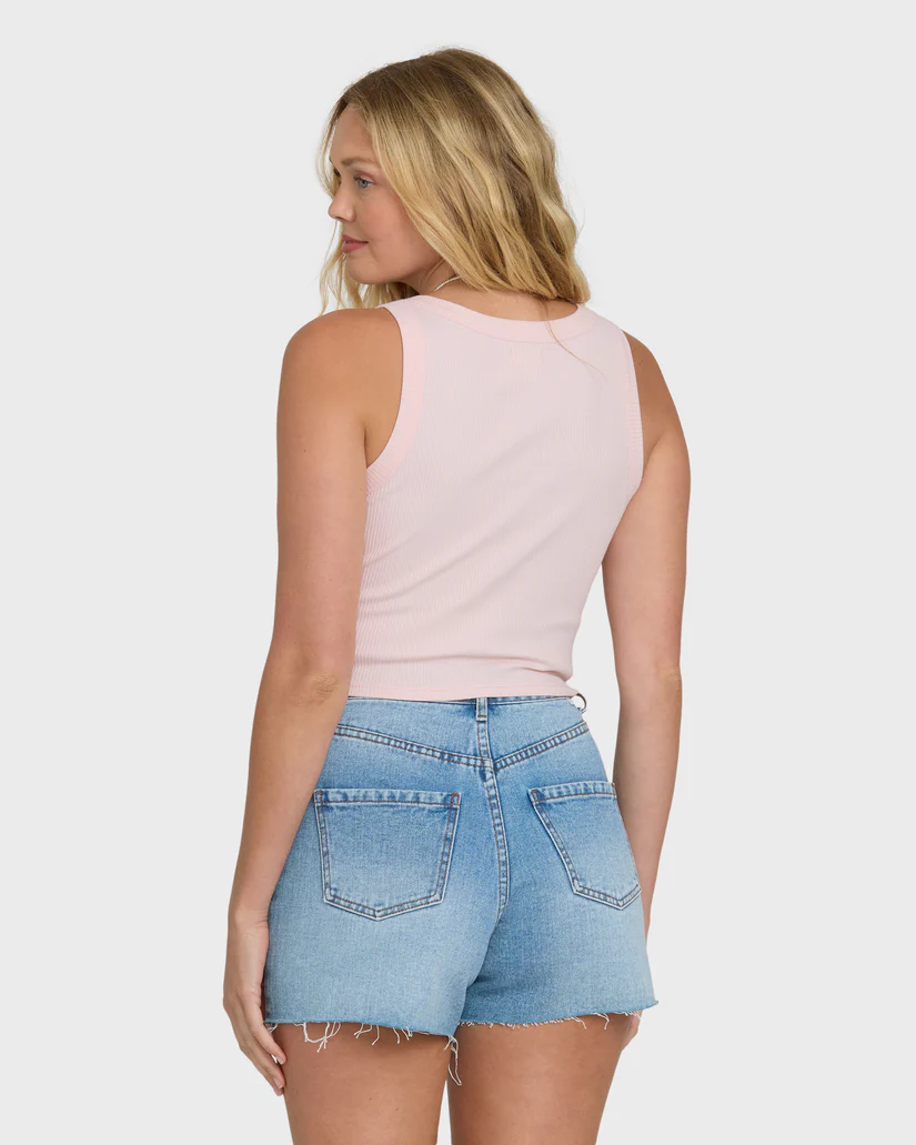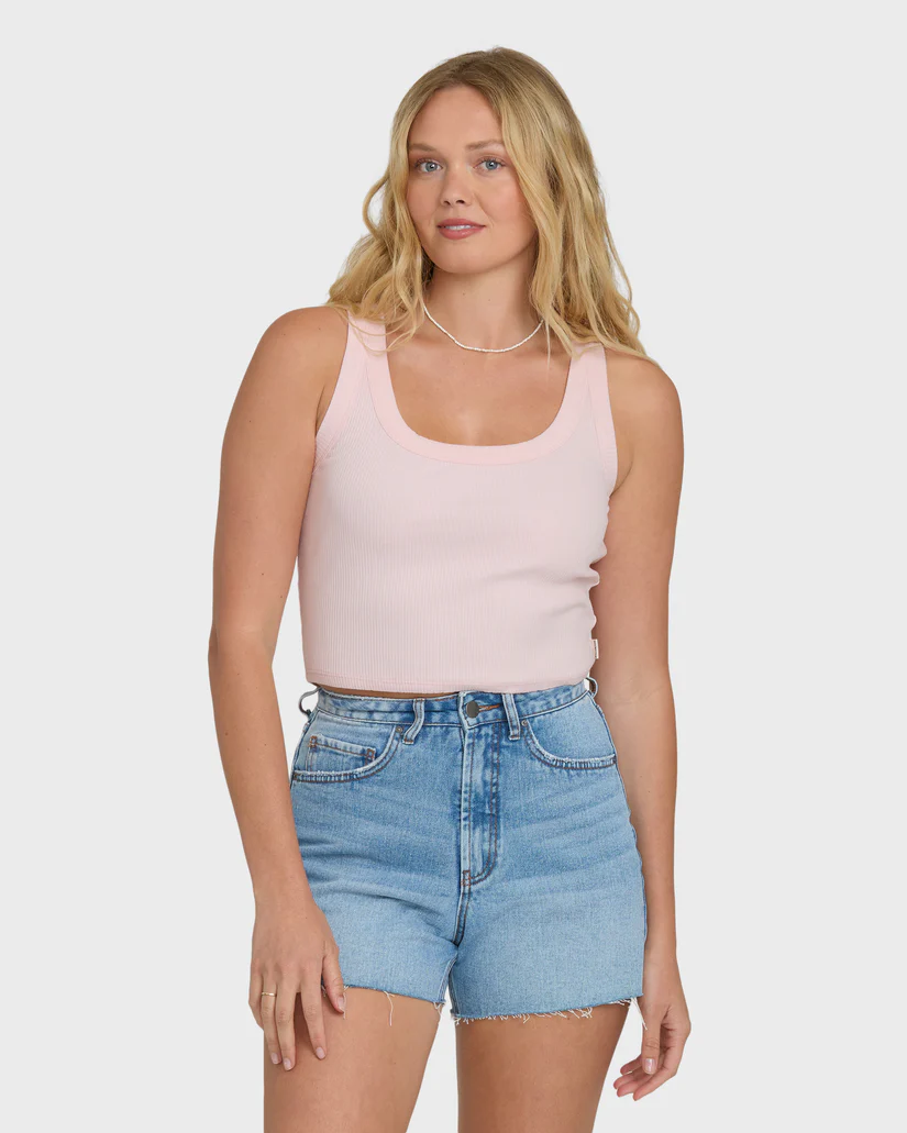 Meet the tank you end up wearing three days in a row without really meaning to. The Rerun Tank is a cropped, fitted knit made from soft, cotton-rich rib that hugs without feeling tight. Wide straps sit easy on your shoulders, the scoop neck shows just enough, and the stretch moves with you from coffee runs to coast drives. Offered in a lineup of sun-faded neutrals and soft color hits, it slips in with cutoffs, slouchy denim, or under an open shirt. Finished with a small flag label, it’s an Essentials Collection staple you’ll keep circling back to. Featured here in the White Cap colorway.