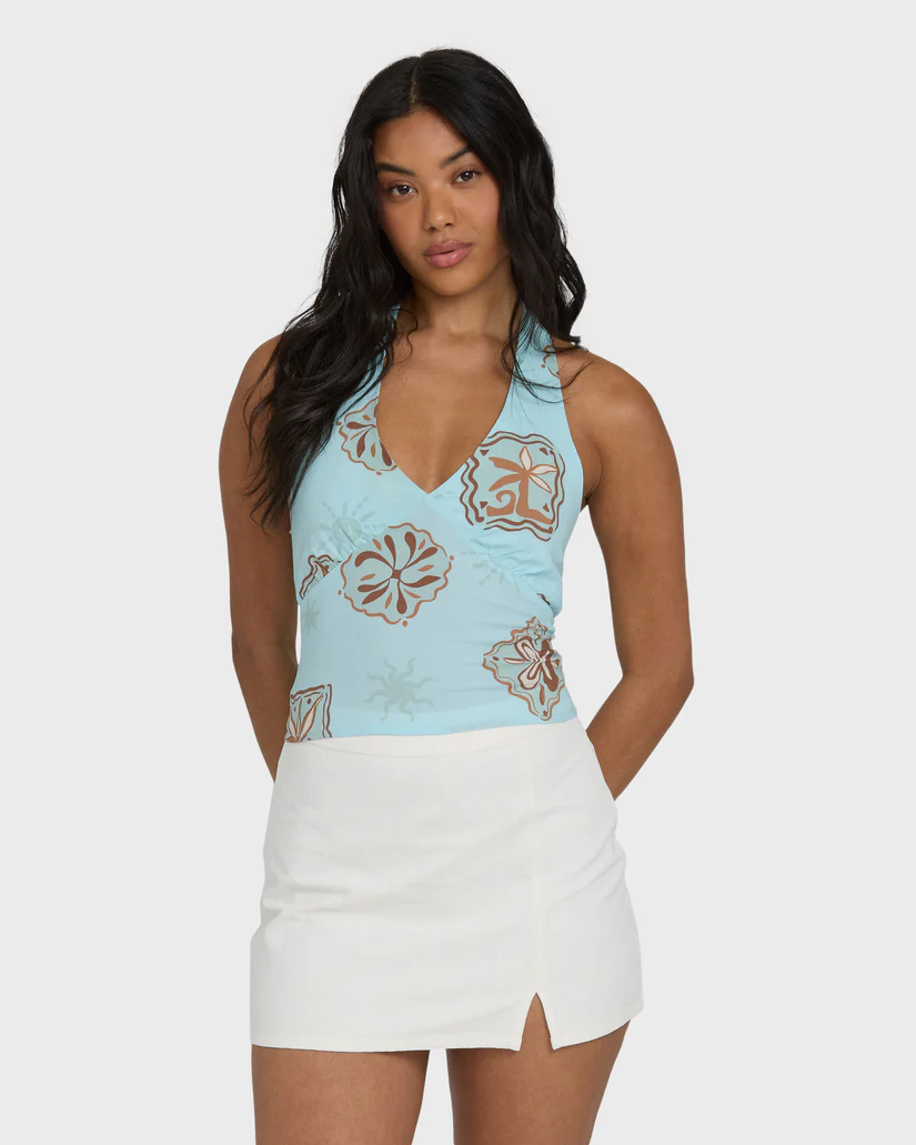 Sunny, cloudy, whatever the forecast’s doing, this tank keeps the vibe light. The Sunny Sometimes tank is a breezy woven top in soft 100% viscose, cut sleeveless with a relaxed shape that skims instead of clings. In Clearwater, it feels like that first dip of the day—fresh, easy, a little bit dreamy. Toss it on with cutoffs, a bias skirt, or salty hair and bare feet, and you’re good to wander from brunch to beach and back again. Featured here in the Clearwater colorway.