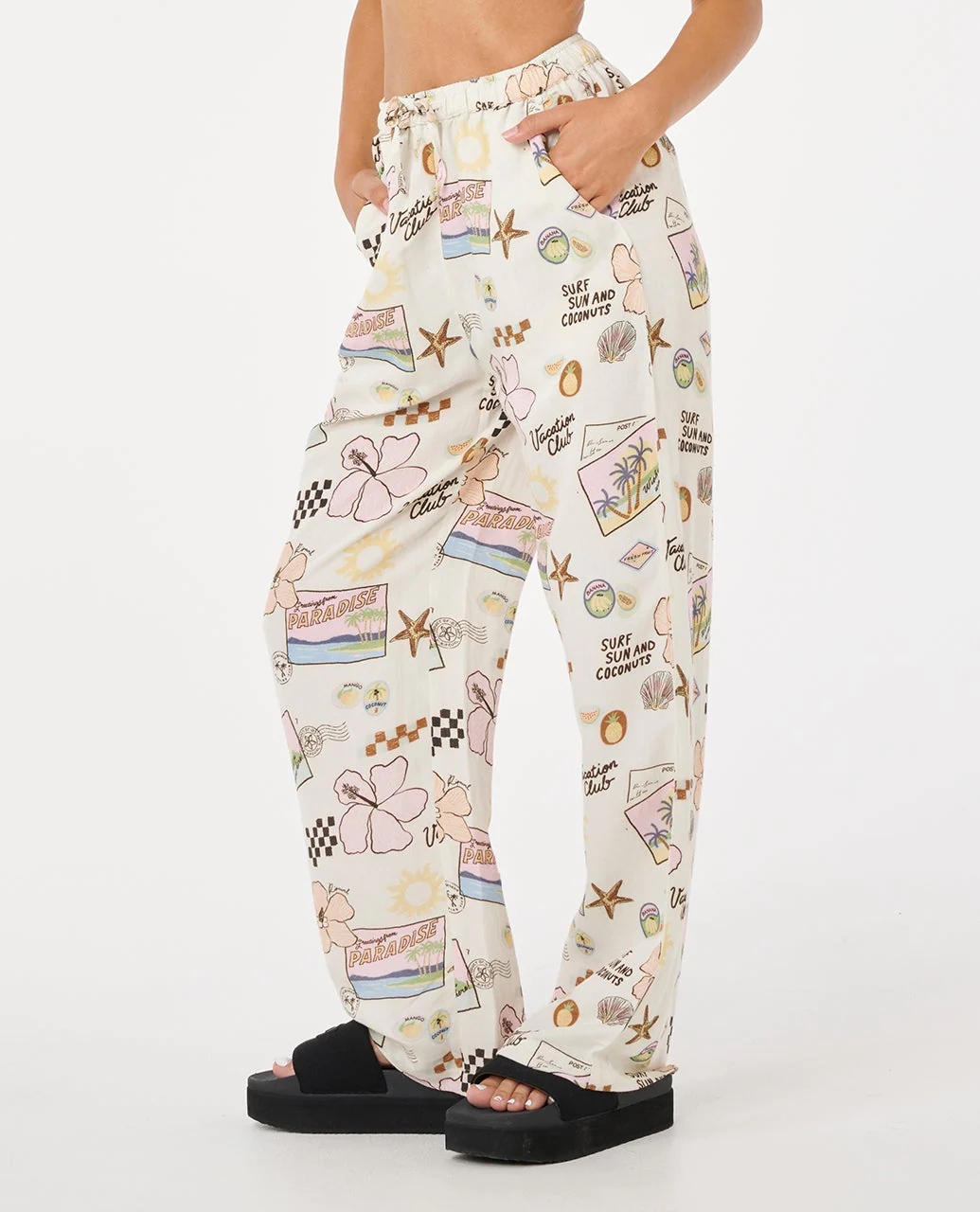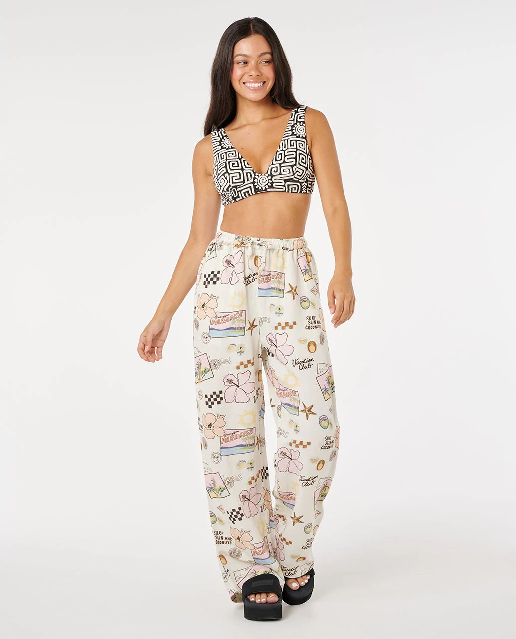 Relaxed and flowy, the Sunset Luau Wide Leg Pants feature a mid-rise design with elastic waist and drawcord. Made from soft linen-viscose fabric with an all-over yardage print and softener wash, they’re complete with a metal logo trim.